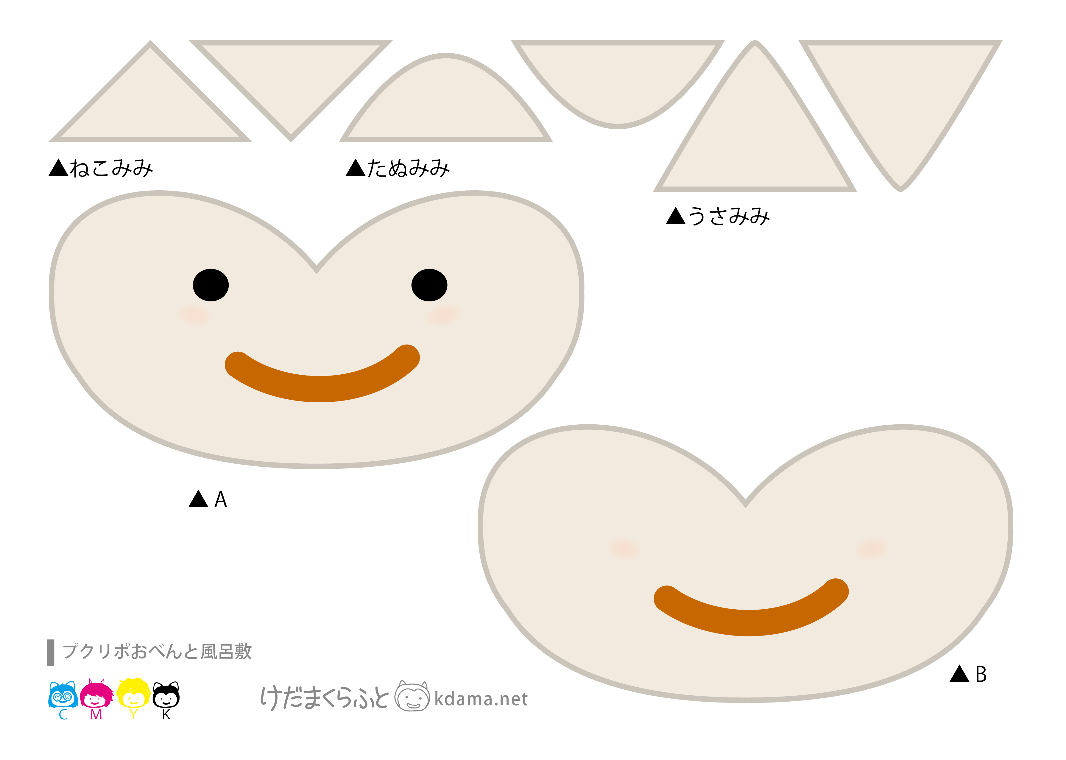 みほん(けだまおにぎり顔)とおなじものを作りたい人はAをそのまま使ってください。